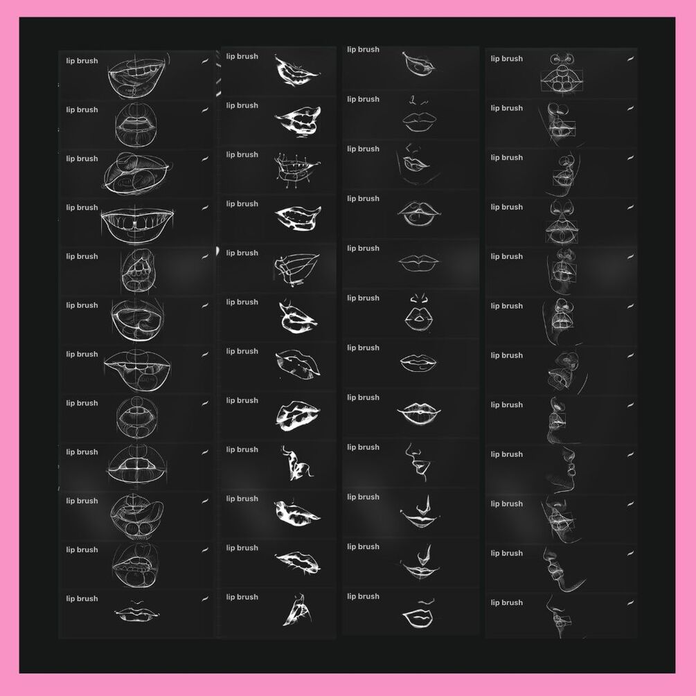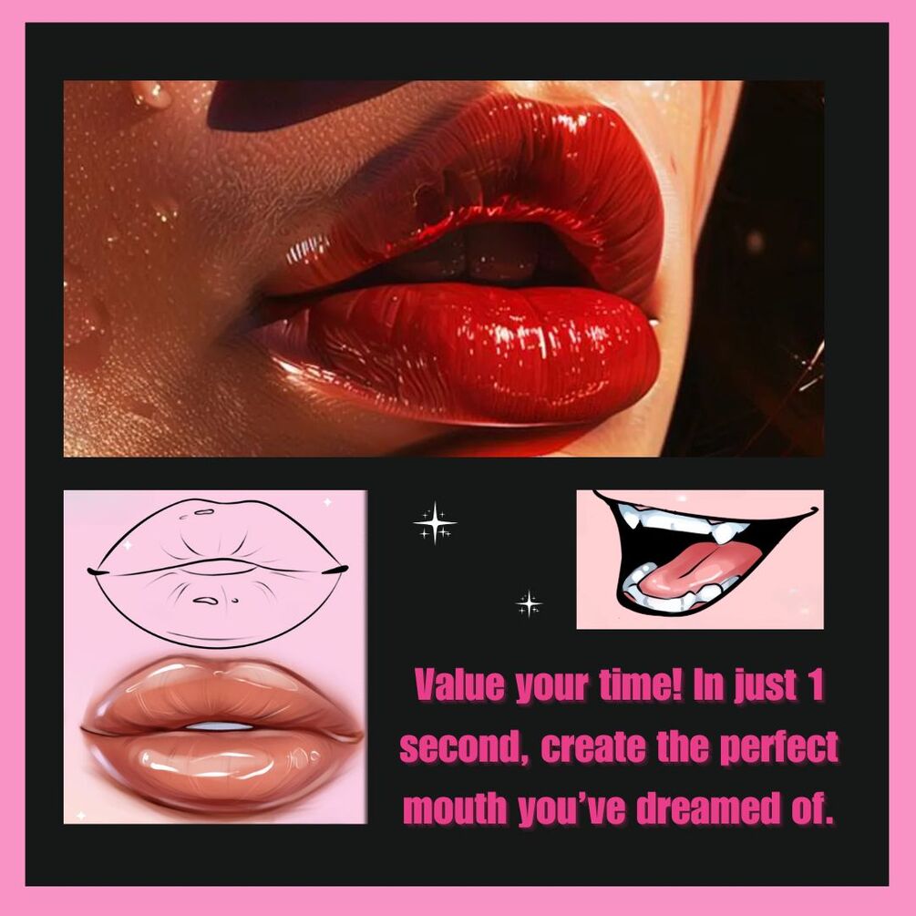 The brush set includes 113+ stamp brushes for easy drawing of lips