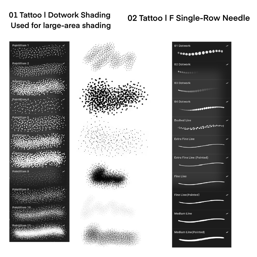 A perfect set of tattoo brushes, All-in-one, featuring 6 brush sets and a complimentary color palette. Suitable for all tattoo artists and illustrators.🎉