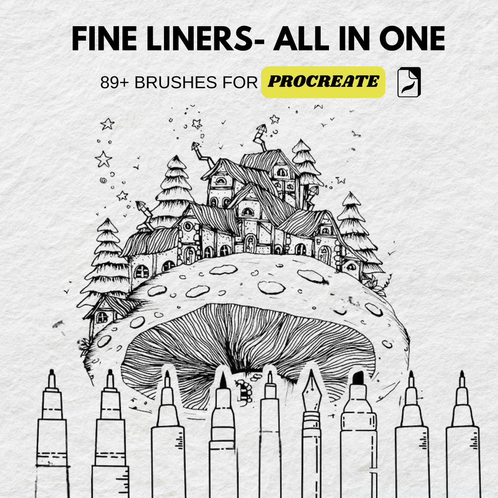 89+ Fine Liner Brush Set for Procreate | Micron, Fineliners, Stipple Brushes, Pattern Brushes, inking and lineart